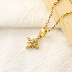 Mới Phổ Biến Thép Không Gỉ 18K Mạ Vàng Ánh Sáng Sang Trọng Tám Cánh Sao Zircon Vòng Cổ Cho Phụ Nữ Bán Buôn
