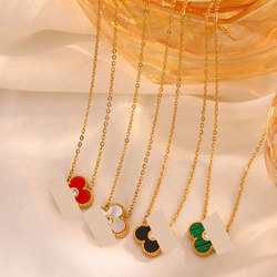 Chất Lượng Cao Thép Không Gỉ Clover Vòng Cổ Thời Trang Cổ Điển Zircon Agate Vòng Cổ Nhà Máy Bán Buôn Của Phụ Nữ Đồ Trang Sức